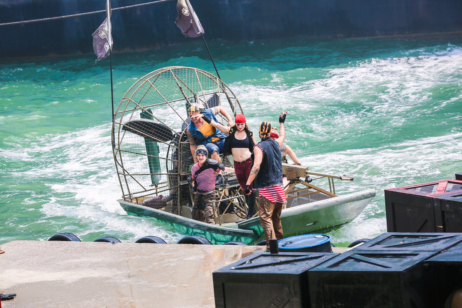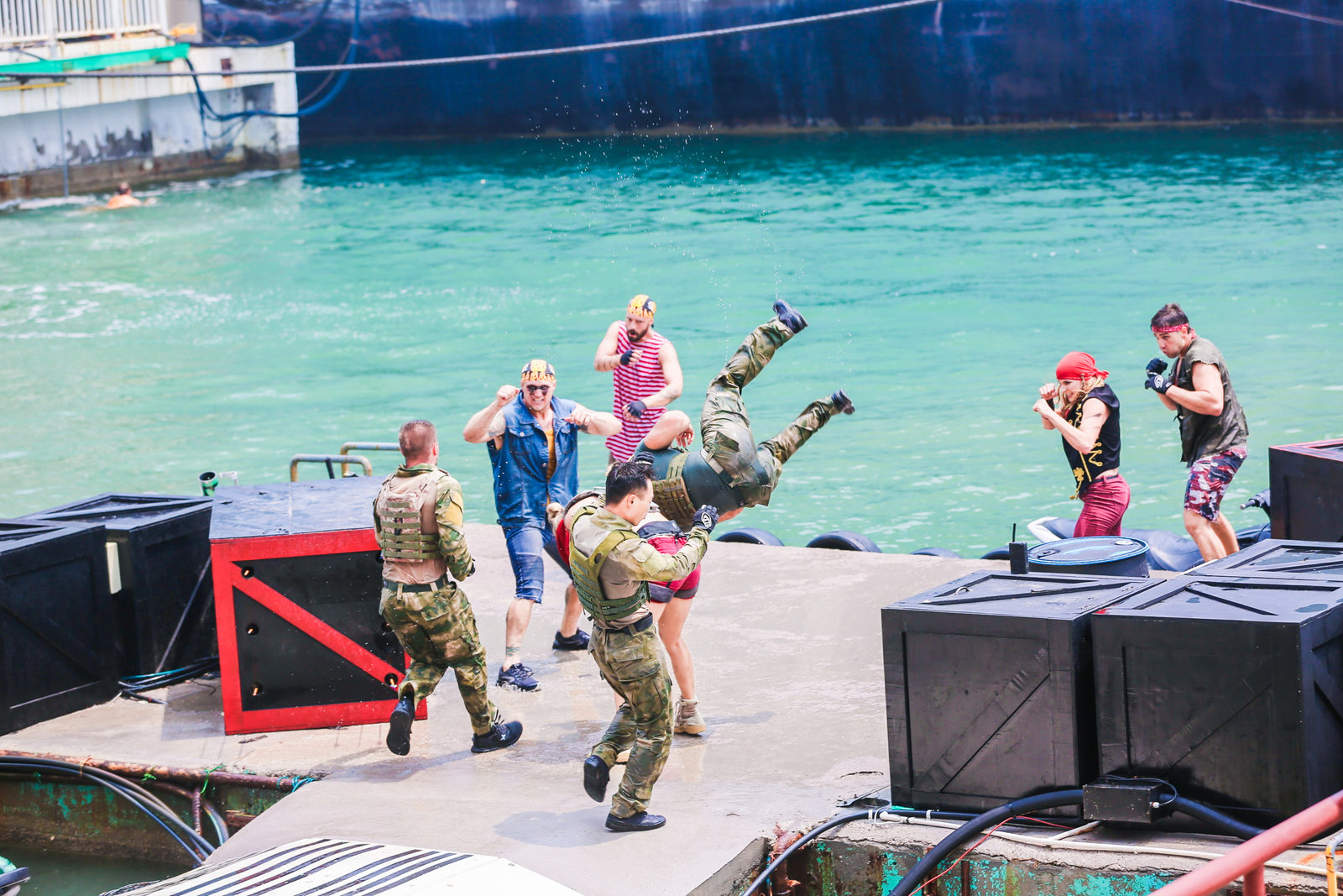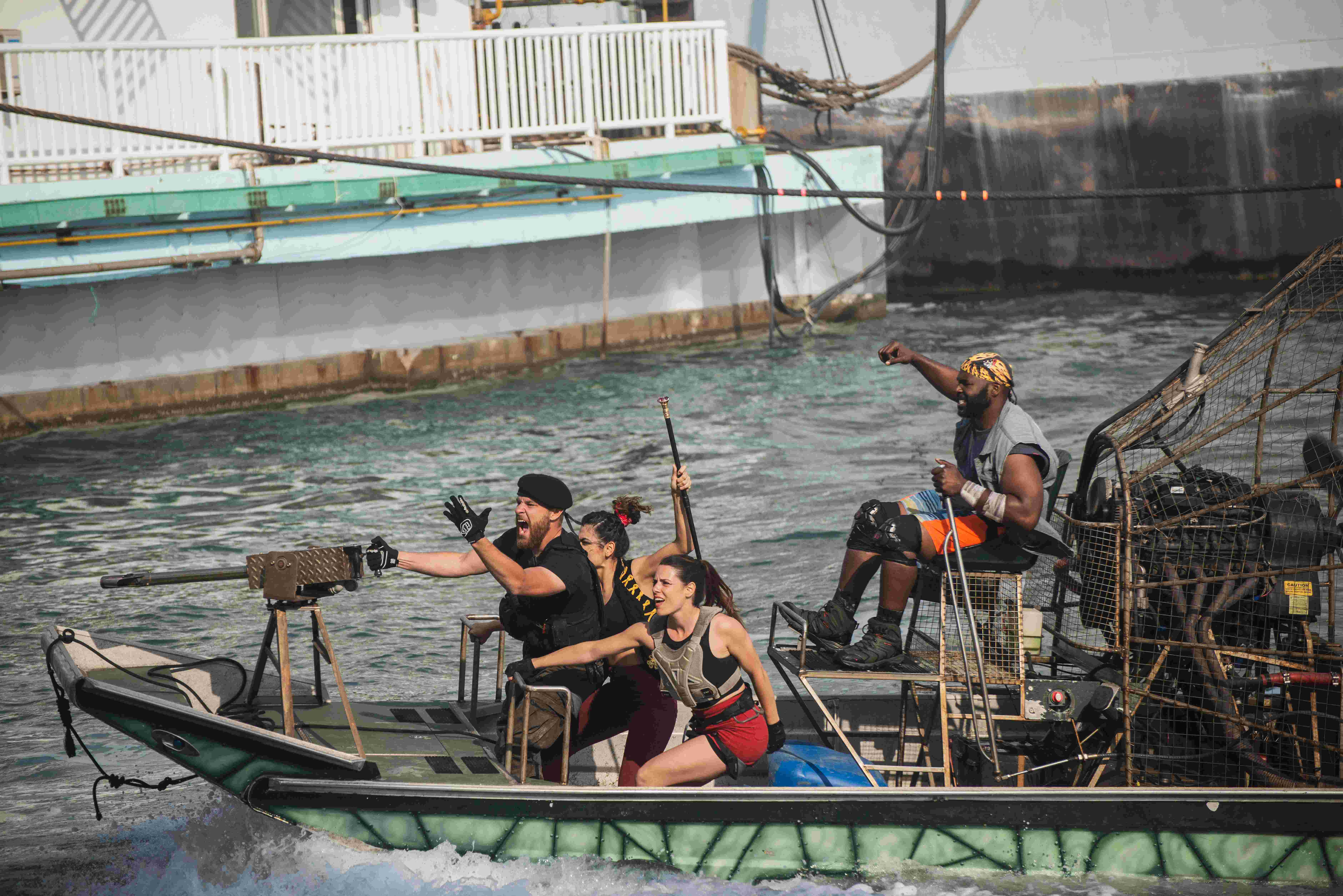《航母風暴》,是泰達航母打造的世界首部以真實航母為題材的大型實景海戰表演劇。該劇由好萊塢金牌班底制作,全球著名特技演員領銜,恢復并利用航母原有武備系統,整場表演使用跳船、風扇機船、海豚潛水艇、橡皮艇、水上飛行器等先進道具,通過潛水、跳水、滑繩、速降、爆破等特技特效表演,為您震撼呈現現場版“國際大片”。該劇一經推出,即受到游客熱烈追捧,現已成為航母公園的王牌節目?!逗侥革L暴》每年五月至十月上演。