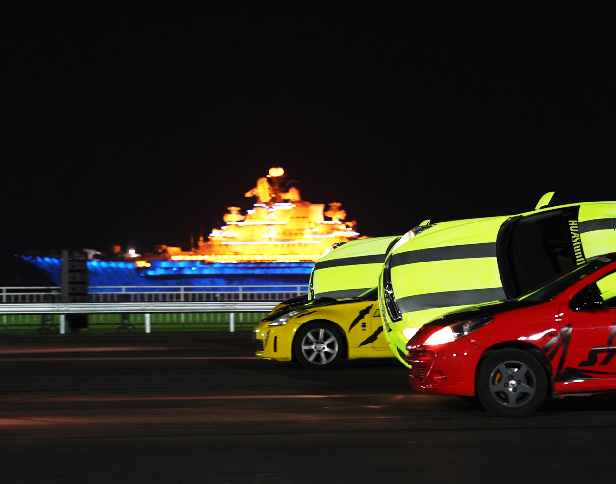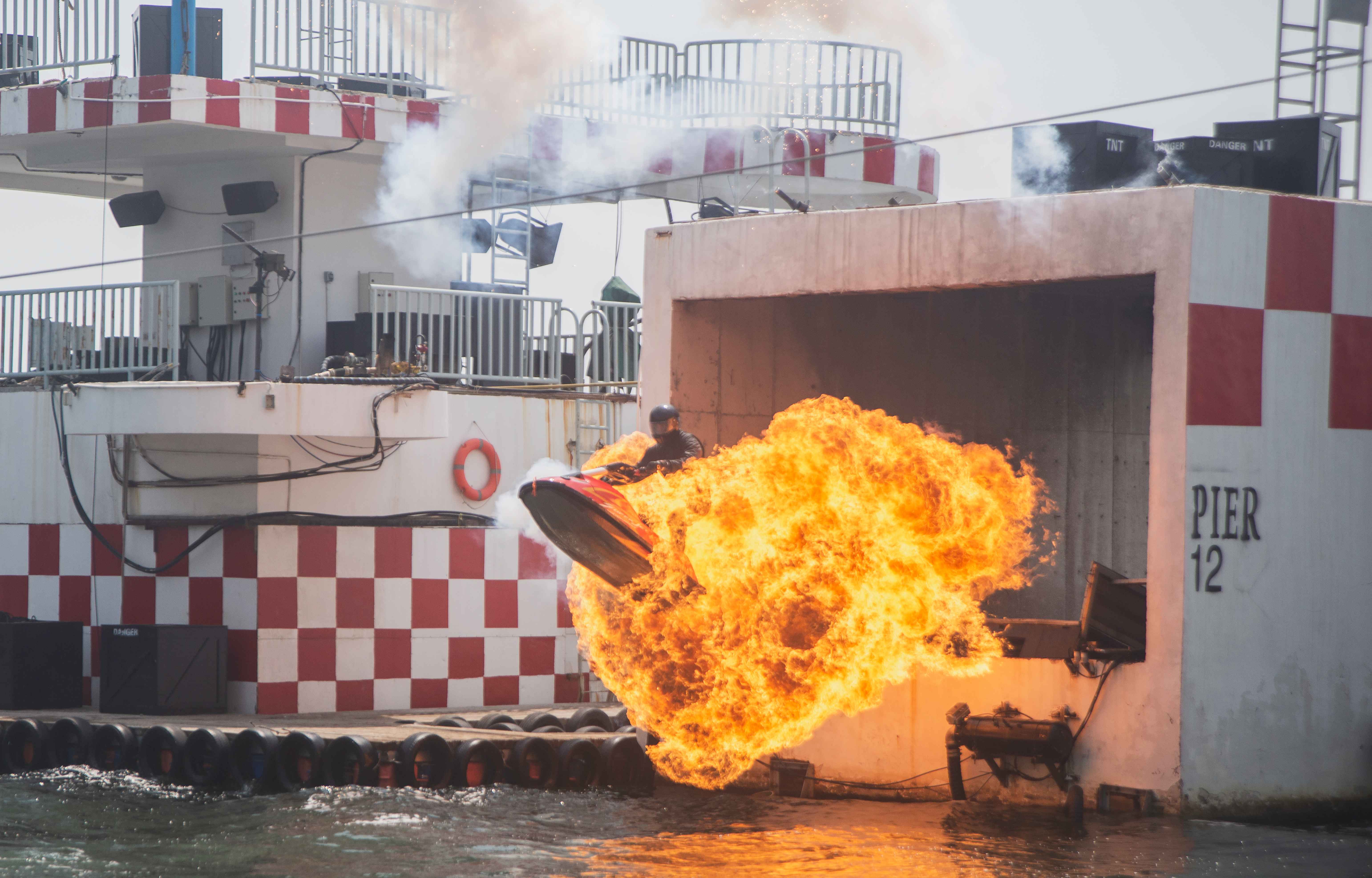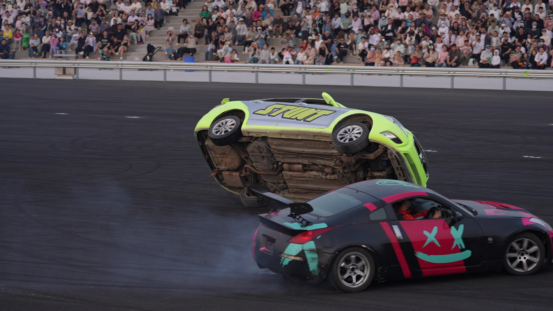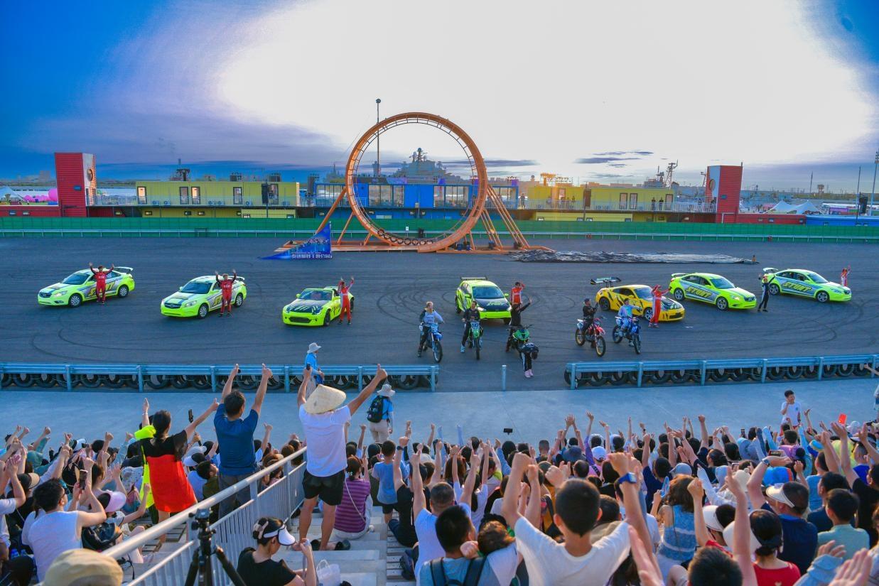 2024年,泰達航母全新打造的《極限追逐》汽摩特技表演在海風廣場超大型飛車表演場燃情啟幕,演出場內近200米的加長跑道設計,為賽車發揮極致性能提供了絕佳舞臺。演出中引入了令人矚目的全國首座12米高的摩天輪大轉環,經過改裝后的賽車將在摩天輪上完成360度旋轉,挑戰人車合一的極限境界,成為該演出最大亮點。此外,演出中更有緊張刺激的雙車追逐、華麗漂移等環節,帶您踏上速度和勇氣的傳奇之旅。